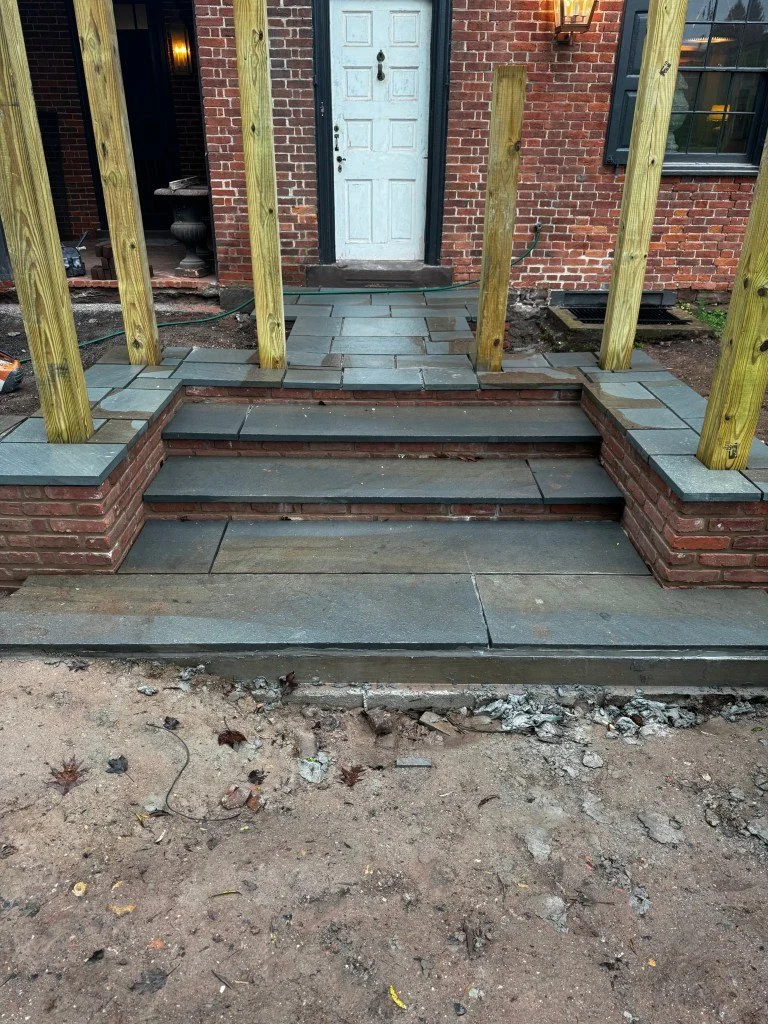 Steps restored with reclaimed brick and bluestone.